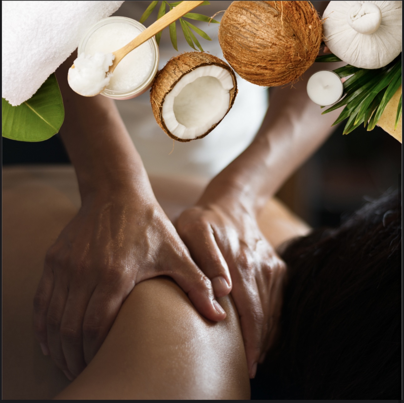Votre Rituel commence par un gommage à l'écorce de Coco (30min) qui exfolie en douceur et révèle l'éclat naturel de l'épiderme.